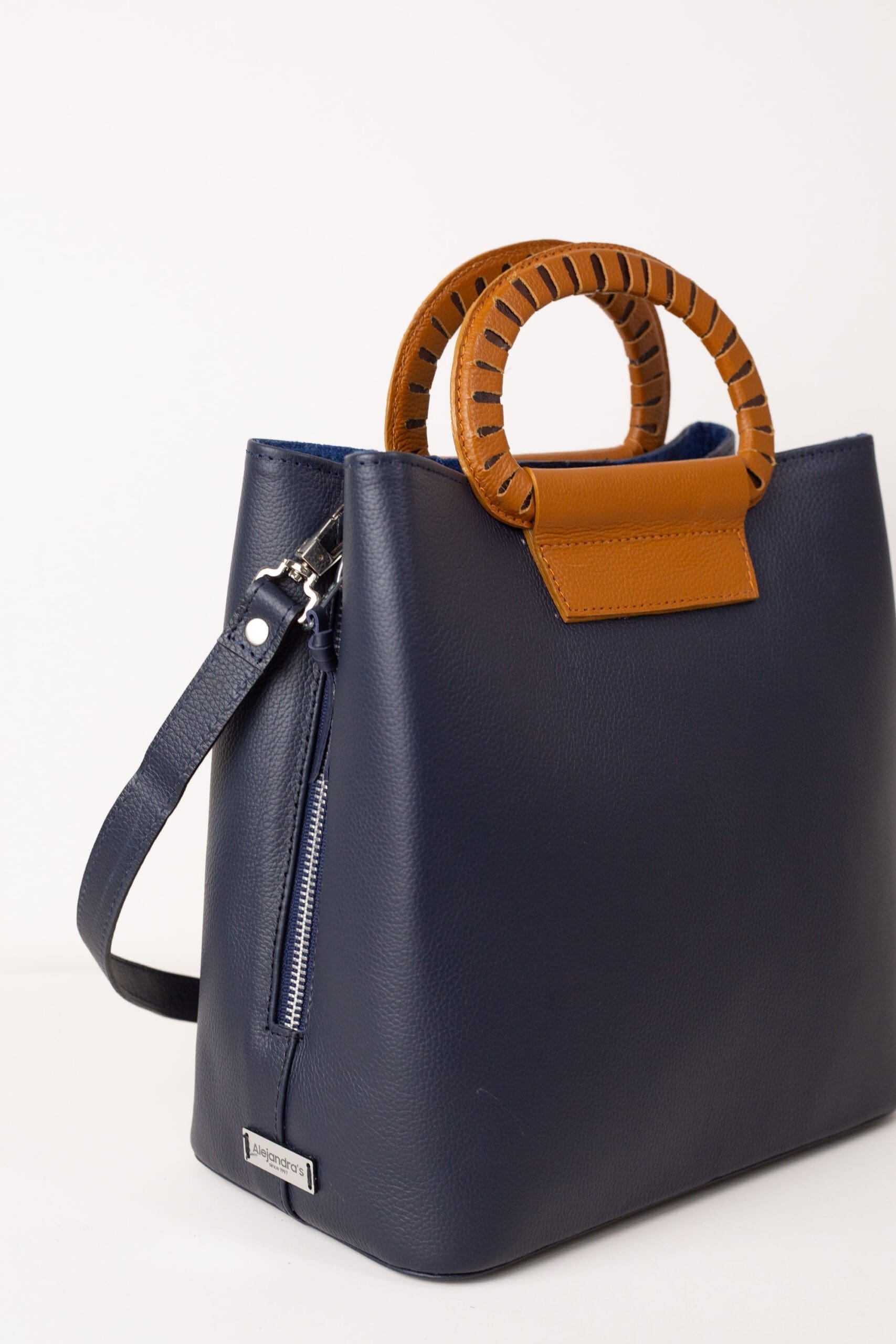 Adjustable shoulder strap and leather handles